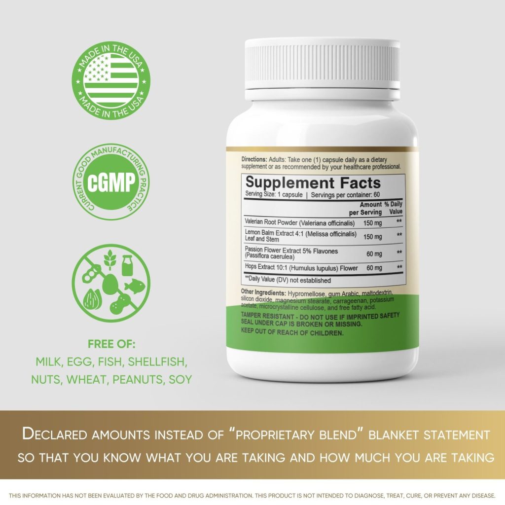 Doctor formulated, USPTO patent pending migraine supplements for relaxation and tension relief. Includes valerian, lemon balm, passion flower, and hops. Intended for people with or without migraine; before, during or after migraine for gentle calm and sleep support and melatonin-free sleep aid. As needed, not for instant migraine relief.